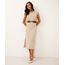 Para um visual de trabalho, combine este vestido midi com um blazer de alfaiataria e sapatos de salto, como scarpins. Adicionar um cinto para marcar a cintura cria uma silhueta diferente e elegante. Em ocasiões mais descontraídas, aposte em sandálias rasteiras ou mules e acessórios delicados para um look chique e confortável.