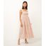 • Modelagem evasê com comprimento midi e saia com recortes franzidos, que garantem movimento e fluidez.