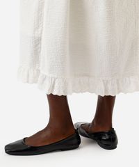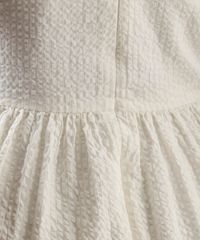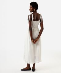 Vestido feminino confeccionado em tecido texturizado de algodão. A peça possui modelo evasê, alças finas com amarração, decote quadrado, caimento solto, barra aplicada com laise, comprimento midi, forro, acabamento pespontado e fechamento posterior por zíper invisível. Composição: 100% algodão Modelo veste: P Medidas da modelo - Altura: 1,73m Busto: 86cm Cintura: 70cm Quadril: 101cm. Instruções de lavagem: - Lavar à mão - Proibido o alvejamento - Não secar em tambor - Secagem em varal - Passar à temperatura média - Não limpar à úmido