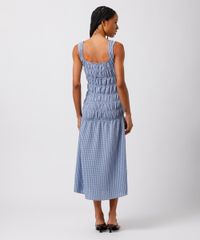 VESTIDO MIDI FEMININO COM FRANZIDOS DECOTE QUADRADO XADREZ MINDSET