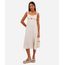 Para um look descontraído de verão, combine este vestido midi com sandálias rasteirinhas ou flatforms e uma bolsa de palha. Se a ocasião pedir mais sofisticação, aposte em sandálias de salto bloco, acessórios dourados e uma clutch. É a peça perfeita para um almoço especial, um passeio à beira-mar ou um encontro no final da tarde.