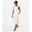 Vestido midi feminino confeccionado em malha texturizada. A peça tem modelagem acinturada, caimento rodado e solto ao corpo com recortes verticais que alongam e modelam a silhueta. O modelo tem decote redondo e alças largas. Possui forro em malha, dois bolsos frontais e acabamento pespontado na barra.