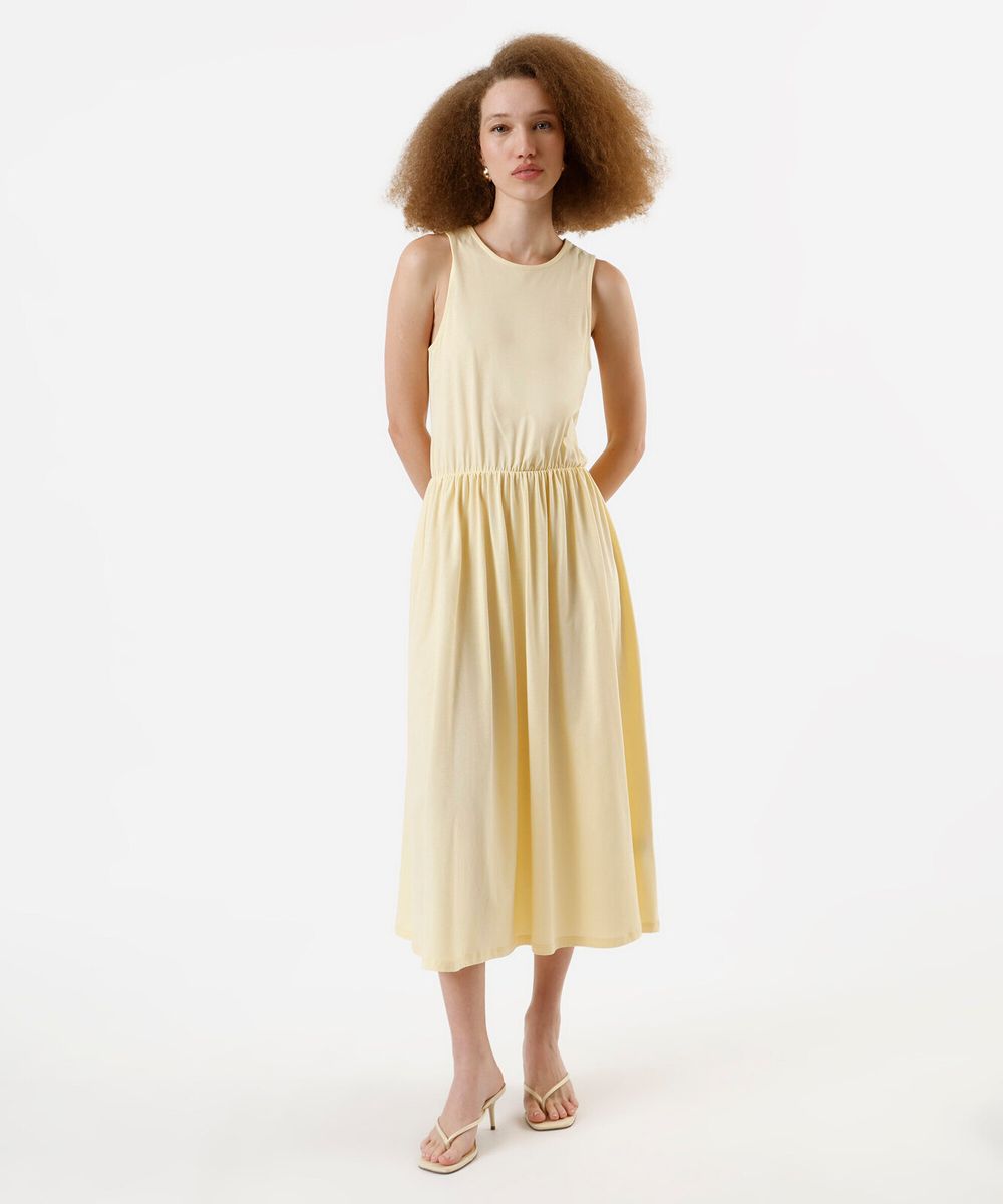 vestido midi feminino de algodão básico amarelo