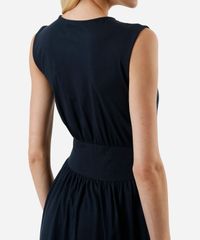 vestido midi feminino de algodão decote redondo azul