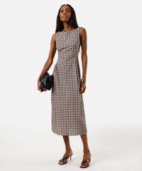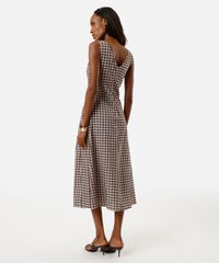 vestido midi feminino de algodão xadrez bege