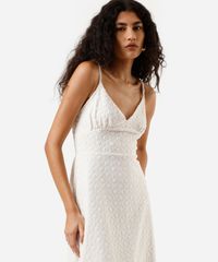 vestido midi feminino de laise alça fina off white