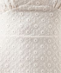 Vestido midi feminino confeccionado em malha laise com bordados vazados A peça tem modelagem evasê, caimento acinturado e solto ao corpo. O modelo tem decote V, alças finas ajustáveis, fechamento por amarração posterior e forro em malha.