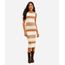 Este vestido midi é a escolha perfeita para quem busca unir conforto e elegância em uma única peça. Com uma padronagem listrada atemporal e modelagem que se ajusta suavemente ao corpo, ele oferece um visual moderno e confortável. Sua confecção em tricô canelado proporciona um toque macio e flexibilidade, tornando-o ideal para diversas ocasiões.