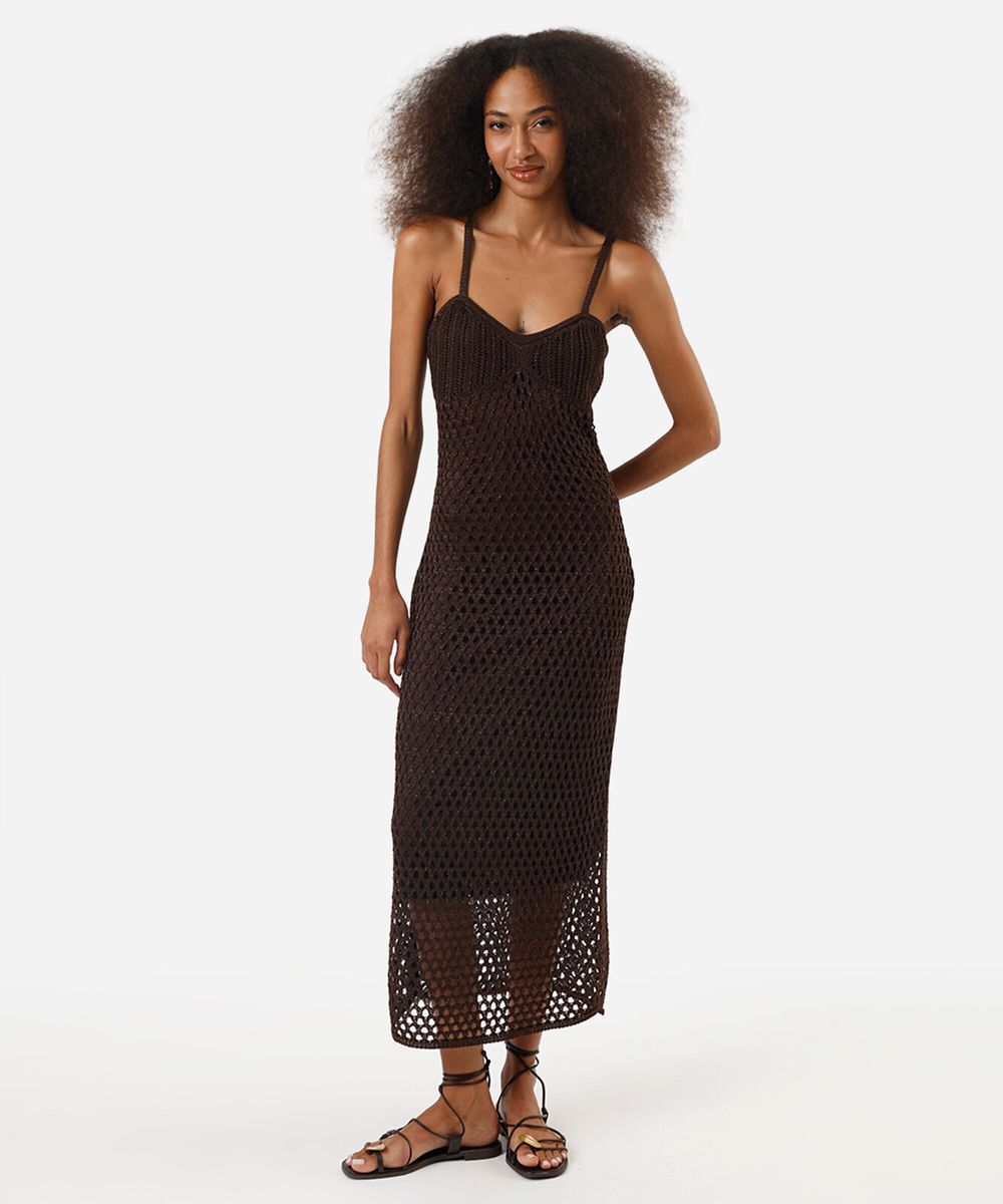 vestido midi feminino de tricot texturizado marrom