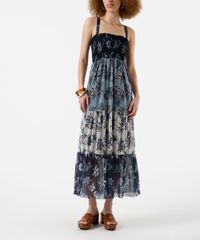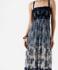 vestido midi feminino de tule com alças finas floral - azul claro