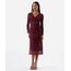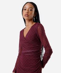 vestido midi feminino de tule franzido poá vinho