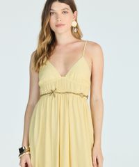 Vestido feminino confeccionado em viscose com toque leve. A peça possui modelagem evasê com caimento solto, comprimento midi, decote V frontal e posterior, alças finas com ajustes, detalhe de pregas e elásticos embutidos auxiliando no desenho da silhueta, acabamento pespontado.