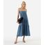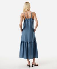 vestido midi feminino de viscose alça fina azul