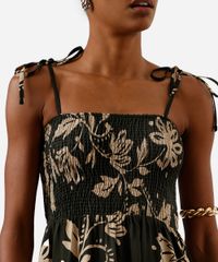 • Alças finas com amarração nos ombros, permitindo um ajuste personalizado e charmoso.
