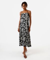 vestido midi feminino de viscose com recorte paisley preto