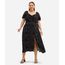 Vestido midi feminino confeccionado em tecido plano de viscose com padronagem poá. A peça tem modelagem acinturada com caimento rodado e solto ao corpo. O modelo tem decote coração com franzido centralizado, lastex aplicado na parte posterior e mangas curtas bufantes com elástico nos punhos. Possui fenda na parte frontal e acabamento pespontado na barra.