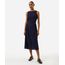 vestido midi feminino decote redondo com franzidos azul