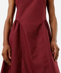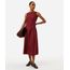 vestido midi feminino decote redondo com franzidos vinho