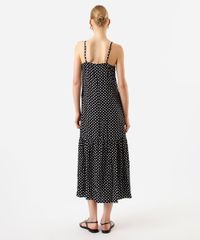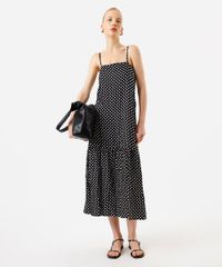 vestido midi feminino decote reto poá preto