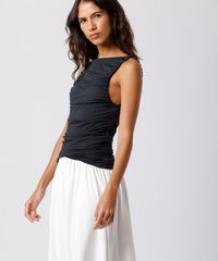 • Busto com efeito drapeado que valoriza a peça, decote redondo e alças largas para maior sustentação.