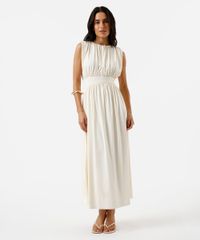 vestido midi feminino franzido off white