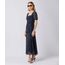 vestido midi feminino manga bufante franzido poá mindset azul