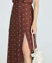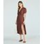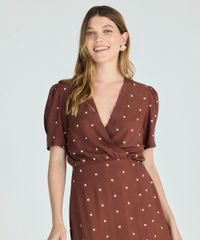vestido midi feminino transpassado de viscose poá marrom