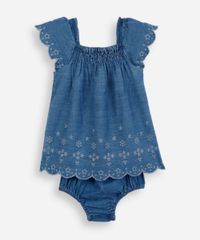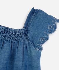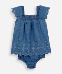 vestido midi infantil jeans laise com calcinha azul
