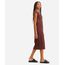 Vestido feminino confeccionado em tecido texturizado com toque leve. A peça possui modelagem reta com caimento solto, comprimento midi, decote v, mangas muscle tee e acabamento pespontado.