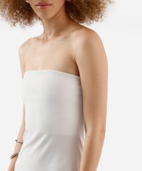• Decote reto sem alças, um clássico que destaca os ombros com elegância.