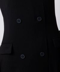 Vestido midi feminino confeccionado em tecido plano com viscose. A peça tem modelagem acinturada, caimento reto e solto ao corpo. O modelo tem decote reto, sem alças, fechamento posterior por zíper invisível, botões decorativos na parte frontal e dois bolsos com lapela funcionais. Possui forro em tecido plano e fenda na parte frontal.