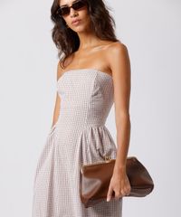 vestido midi sem alça feminino de algodão xadrez mindset marrom