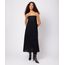 vestido midi slip dress com linho e renda mindset preto