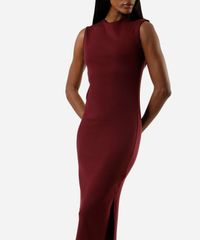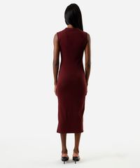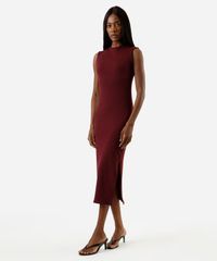 vestido midi tubinho feminino de algodão com manga japonesa e fenda vinho
