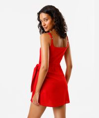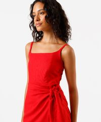 vestido pareô feminino com linho vermelho