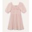 vestido texturizado juvenil com recorte manga curta rosa