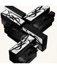 • Design icônico: um frasco monolítico laqueado em preto, onde o emblemático logotipo YSL Cassandre está embutido no vidro.